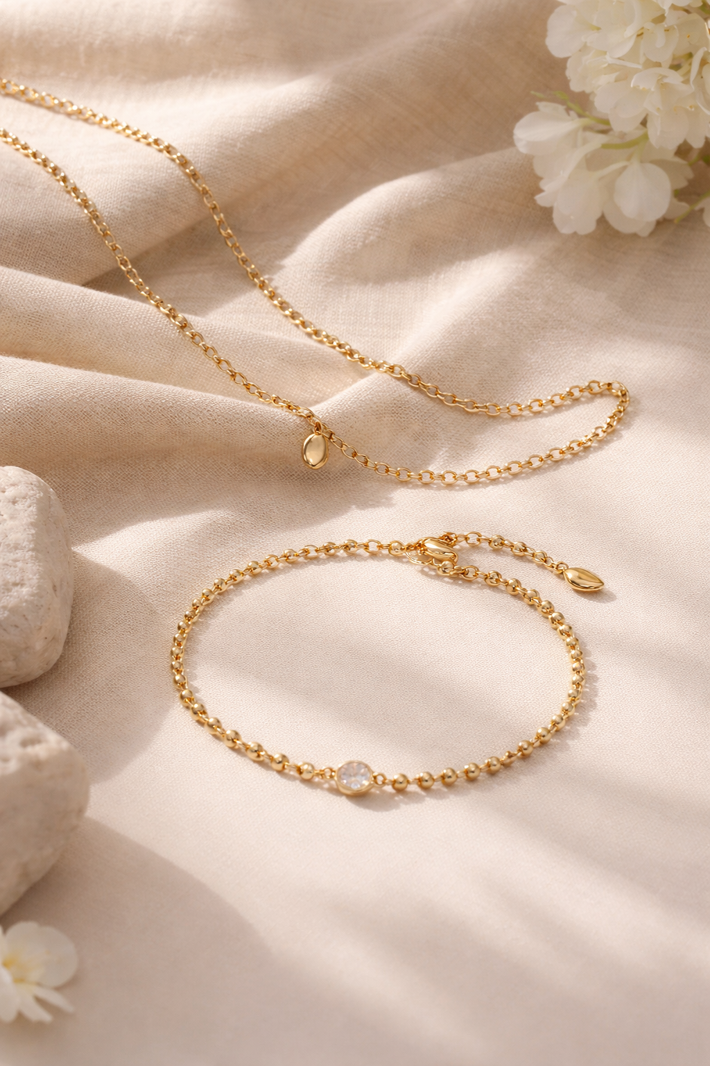 Crafted with anti-tarnish 92.5 sterling silver, our sleek chains and bracelets are designed to enhance your style effortlessly.